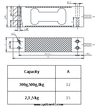 輸出(chū)靈敏度(dù) | Rated output | 1.0±10%mV/V(300g,500g) 2.0±10%mV/V(1~5kg) |