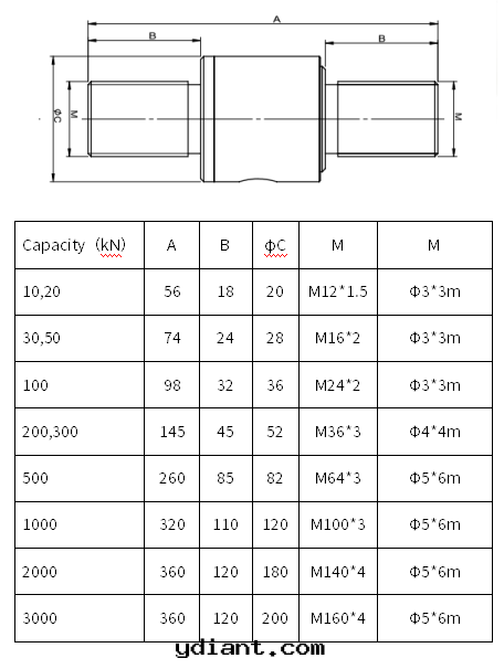 額定容量(liàng) | Capacity | 10,20,30,50,100,200 300,500,1000,2000,3000kN |