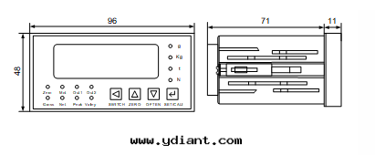 ●開(kāi)孔式面(miàn)闆安(ān)装,面(miàn)闆面(miàn)積僅96mm(宽(kuān))×48mm(高(gāo))